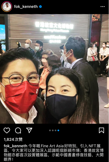 10月10日,霍启刚在社交平台晒出和爱妻郭晶晶一起看展的照片。照片中,两人穿着低调,郭晶晶白色衬衣配黑长裙温婉知性,与同色系着装的老公亲密合影,心情看起来十分不错。期间,霍启刚拍下郭晶晶低头看画册的背